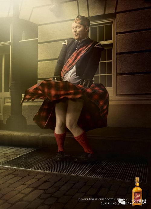 Dean’s 威士忌——出乎意料地溫柔哦(廣告語Surprisingly Mild雙關)。