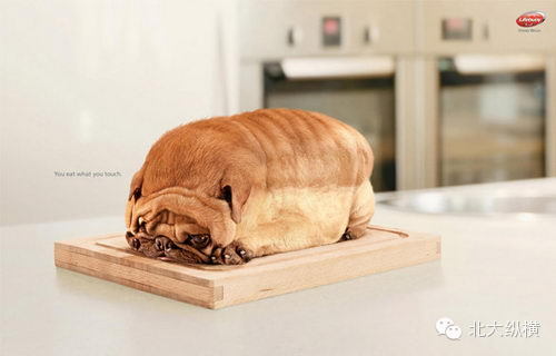 狗糧廣告——這只狗該改善一下口臭問題了。