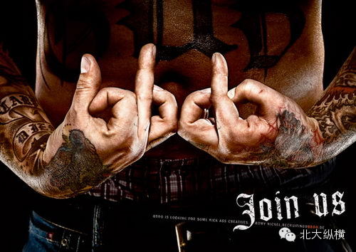 BBDO廣告公司的招聘廣告,用手指組成公司名稱