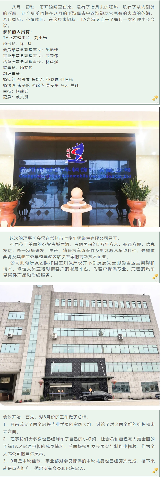 TA之家八月理事長會議圓滿結束